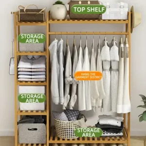 Дрвена закачалка со полици за облека и чевли 130x141cm