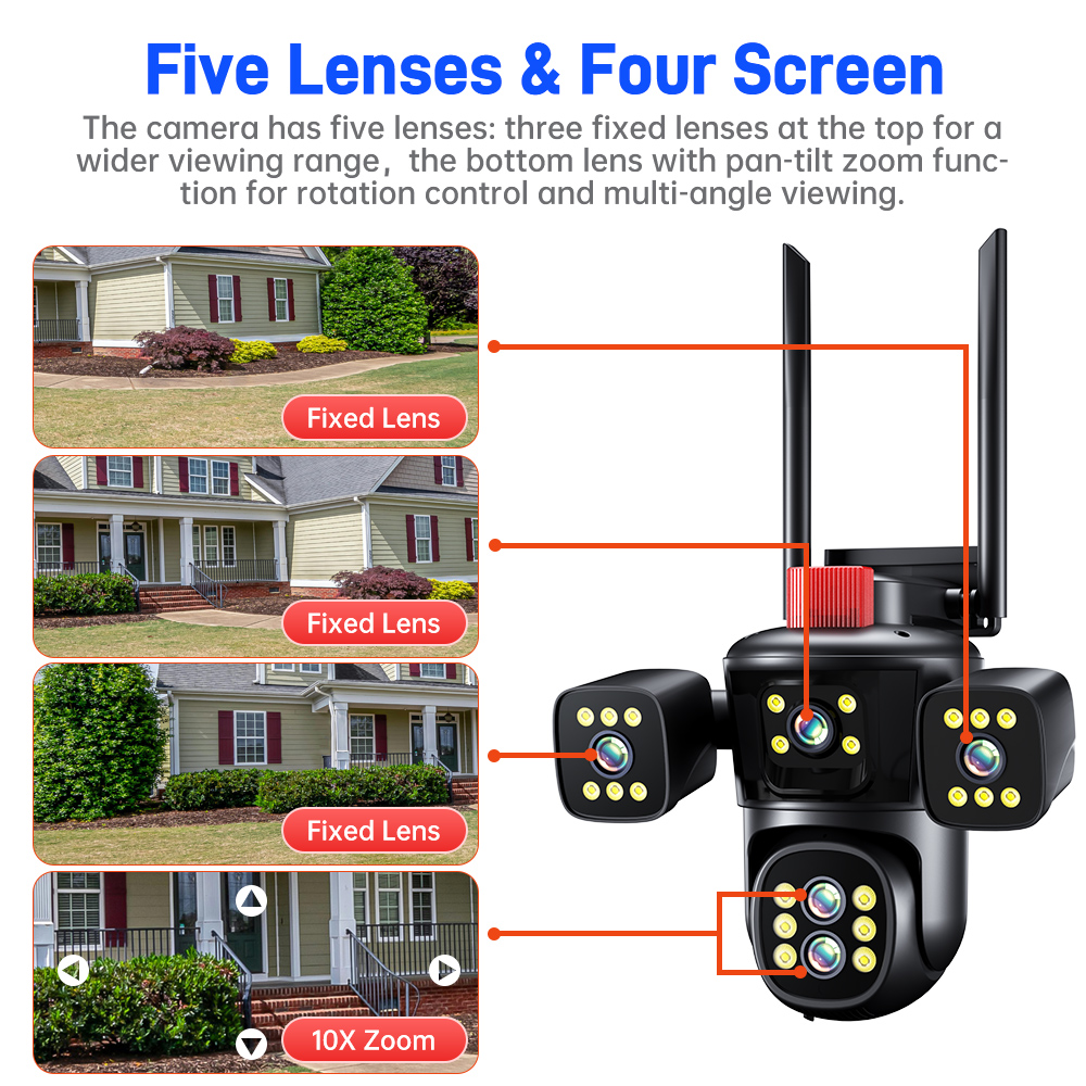 2. Пет објективи со четири екрани, 10X зум и 360 степени за надзор;