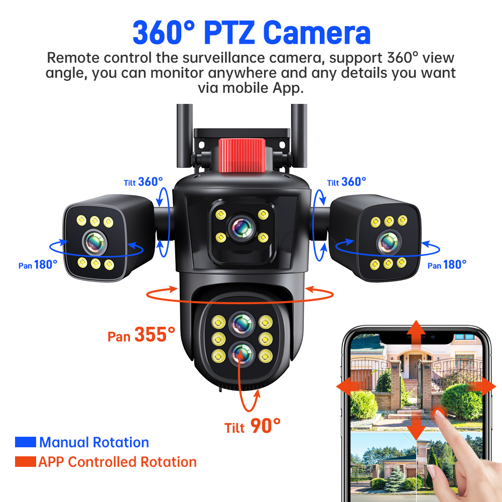 5. Две странични камери поддржуваат хоризонтално и вертикално рачно произволно прилагодување од 180 степени
