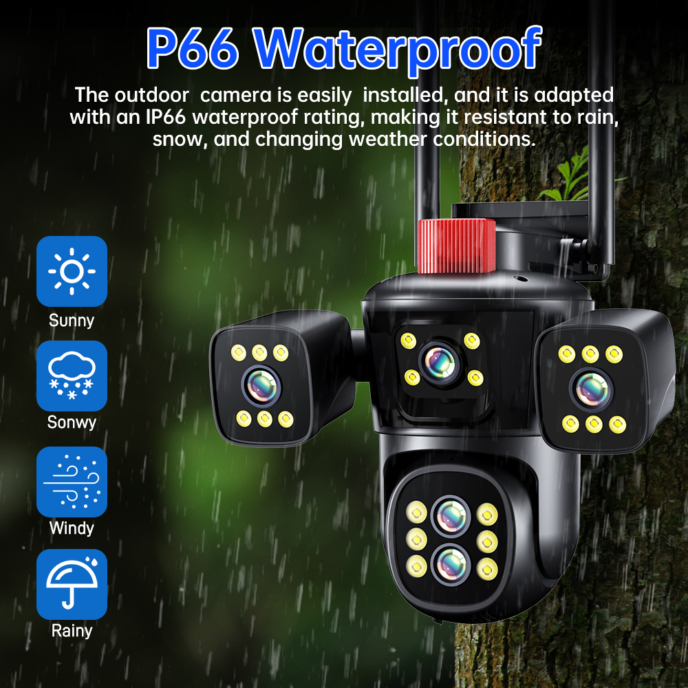 * Безбедносната надворешна камера е опремена со куќиште отпорно на водоотпорност со оценка IP66, дизајнирано
