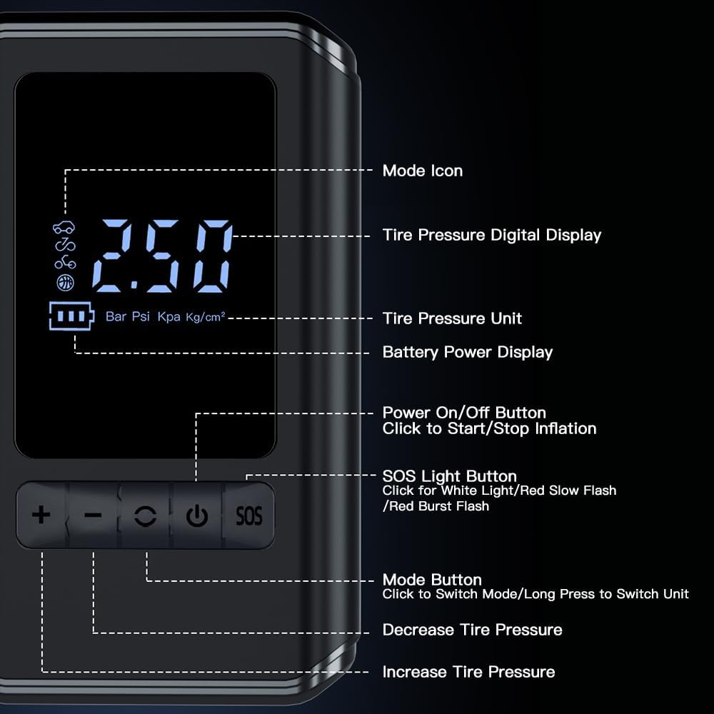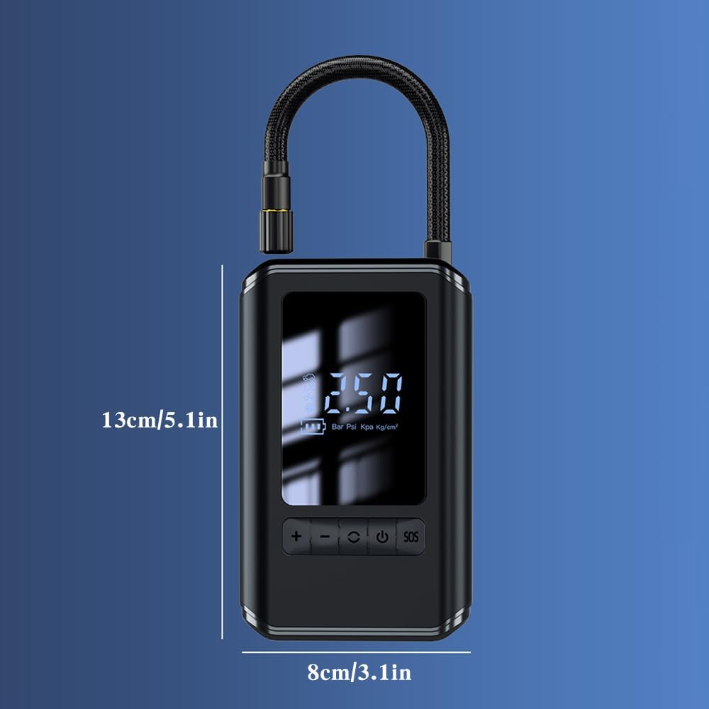 Оваа пренослива безжична пумпа за гуми со дигитален дисплеј ти овозможува леснотија и удобност во одржувањето на оптималниот притисок во гумите, без разлика дали си на пат, велосипед или дома.