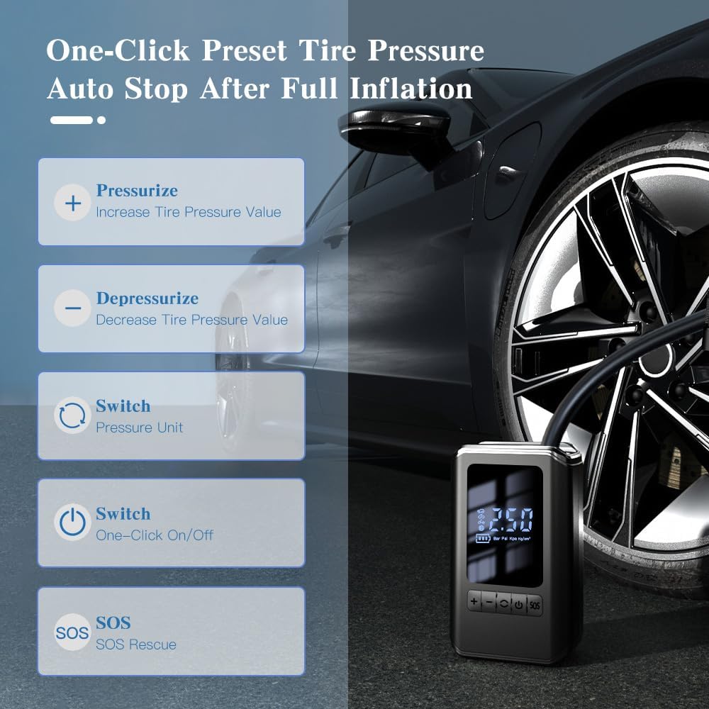 Има способност брзо и прецизно да ги надува гумите, со што се решава проблемот со недостатокот на соодветен притисок во гумите на возилата или велосипедите.