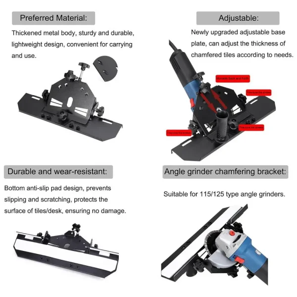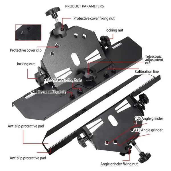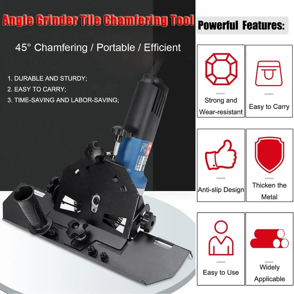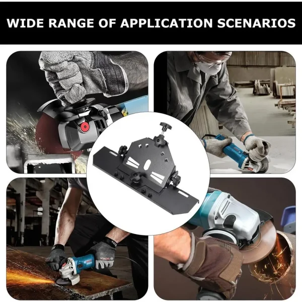 1. Издржлив материјал: Додатокот за брусилица за сечење под агол од 45 степени има задебелено метално тело, кој е издржлив, отпорен на абење и поиздржлив.