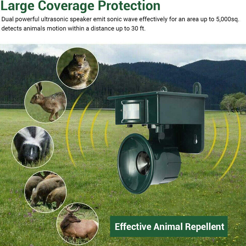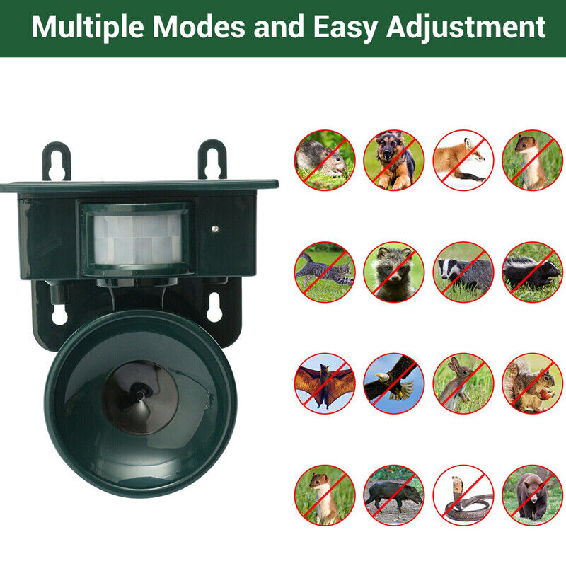 и го активира системот да емитува ултразвучни фреквенции, способни да одбиваат птици, мачки, кучиња, глувци, лисици и многу повеќе.