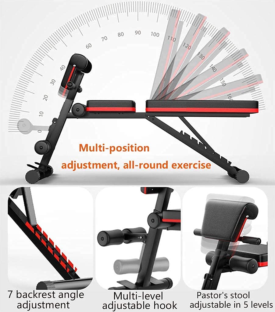Целосно прилагодлива за вежби по мерка: Со повеќекратни наклонети, спуштени и рамни позиции, оваа склоплива клупа за вежбање може да се прилагоди за да одговара на различни вежби. Користете ја како клупа за кревање тегови, клупа за фитнес или клупа за вежбање за дома за ефикасно таргетирање на различни мускулни групи.