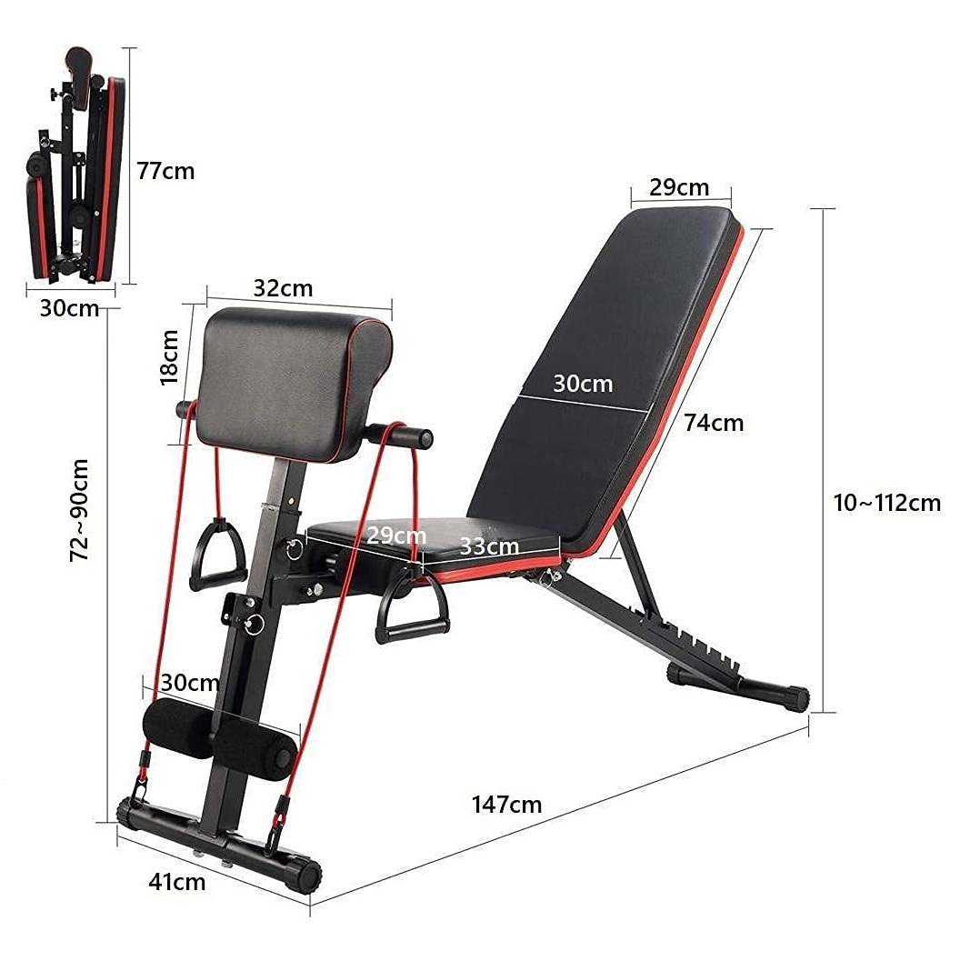 Компактен дизајн што заштедува простор: Оваа склоплива клупа за вежбање и склопливата клупа за вежбање се идеални за мали простори. Неговиот компактен дизајн ѝ овозможува да се користи и како клупа за седење, клупа за вежбање за домашна теретана, па дури и како клупа за истегнување на грбот, што ја прави совршена за разновидна употреба.