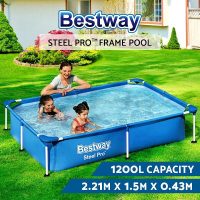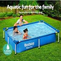 Ништо не се чувствува подобро од освежително капење во вода. Овозможете им на вашите деца добро време за пливање со нашиот базен Bestway со метална конструкција. Потребни се само неколку минути за да се постави. Вашите деца ќе имаат активна игра и време за прскање токму во вашиот двор. Базенот е доволно голем за родителите да ги придружуваат своите деца. Направен од челична рамка обложена со прав и отпорна на ‘рѓа, базенот е прилично цврст и издржлив и нуди оптимална стабилност.