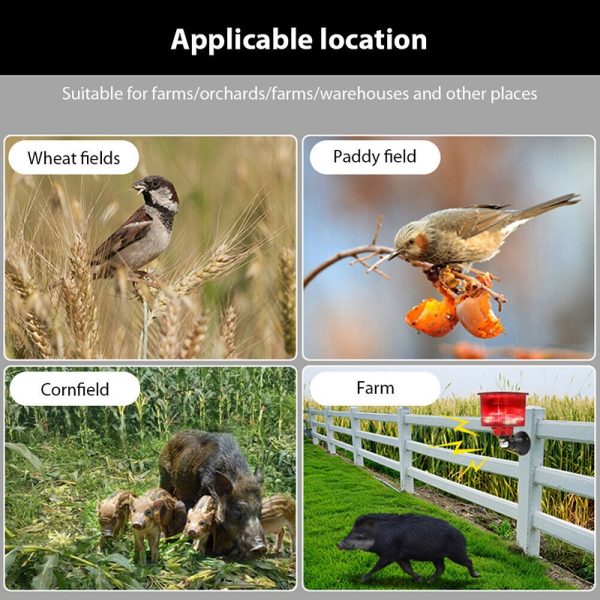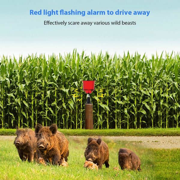 3. Ноќно средство за спречување на животни: Нашиот средство за заштита од диви животни е совршен за одвраќање на ноќни животни како што се ракуни и диви свињи, со комбинација на гласни звуци и трепкачки светла кои служат како предупредувачки сигнал за да се чуваат подалеку од посевите и други области.