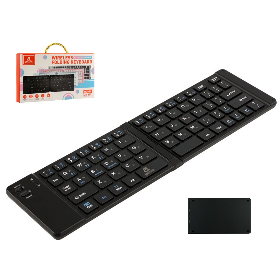 Благодарение на преклопливиот дизајн и безжичната Bluetooth конекција, лесно се вклопува во торба и овозможува удобно пишување на паметен телефон, таблет или лаптоп. Сигурна шарка, која се одликува со отпорност на зголемени оптоварувања и интензивна употреба. Гумирани влошки кои гарантираат стабилност на која било површина, спречувајќи лизгање. LED индикатори за следење на статусот, копчиња за вклучување и поставување на конекцијата. Тастатури со оптимални димензии, површина пријатна на допир и висококвалитетни, јасни симболи. 66 копчиња: стандарден распоред на букви (англиски/украински), нумерички ред, стрелки и други, најнеопходни, функционални копчиња. Нископрофилни копчиња со исклучително тивок, мек потег, кој е обезбеден со механизам со ножици. Компатибилен со уреди во радиус до 10 m. Функционални копчиња за брзо префрлување помеѓу три уреди што работат со iOS, Android и Windows.