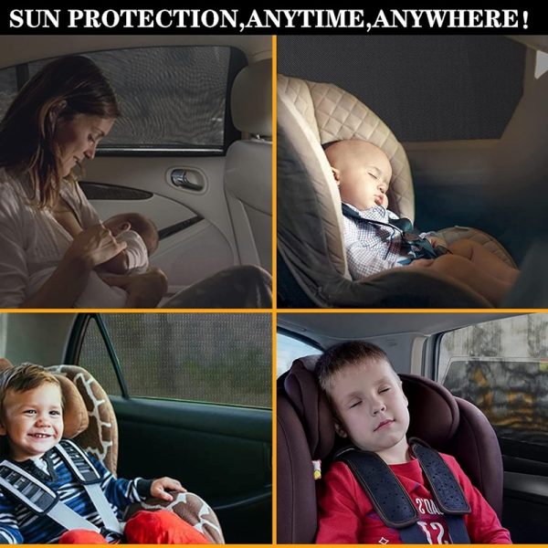 Завесите за сонце за автомобил се направени од мрежа со висока густина, може да ги блокира штетните УВ зраци. Заштитете ги вашите деца и семејство од сончевиот отсјај, топлината и штетните УВ зраци. Направете го ентериерот на автомобилот МНОГУ ПОЛАДЕН! Задолжително за вашето патување.