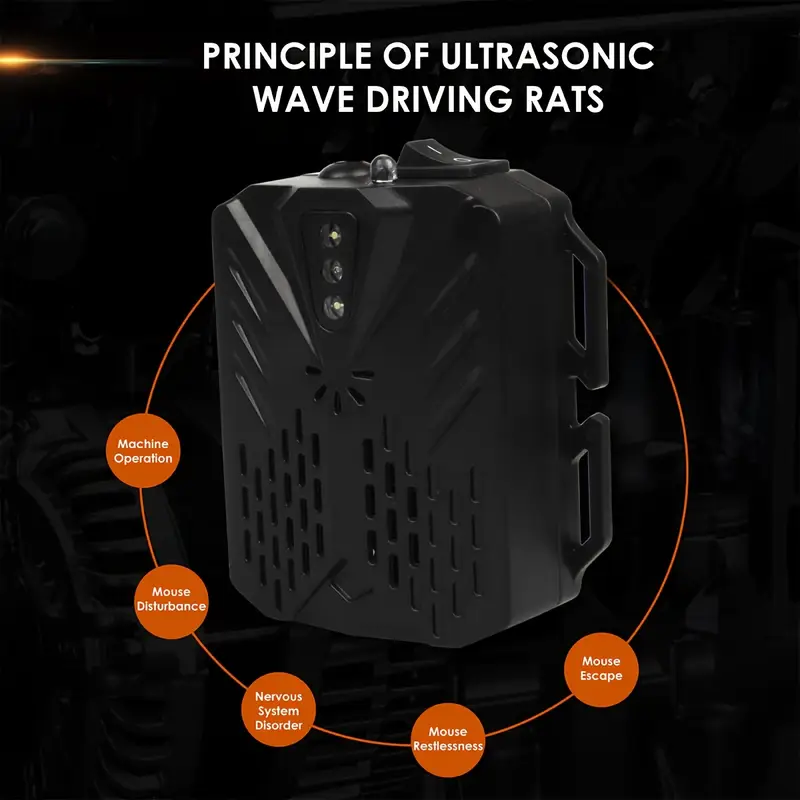 Уредот периодично испушта променливи ултразвучни бранови кои влијаат на глодарите и ги бркаат подалеку од вашиот автомобил.