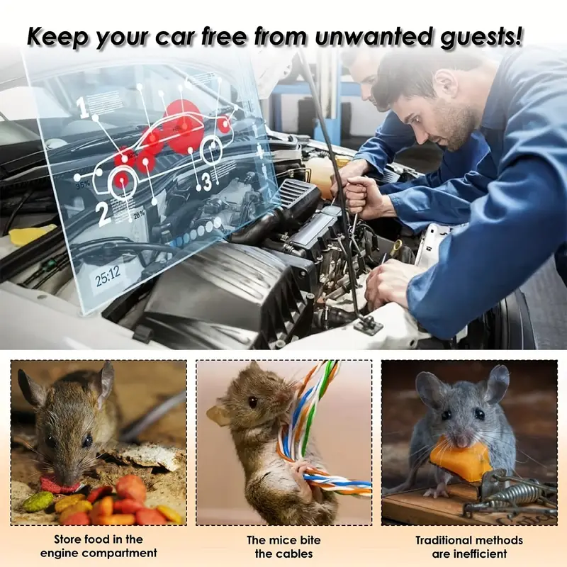 Ултразвучен уред против глодари кој се поставува во вашето возило дирекно под хаубата како би ја заштитило електричната инсталација