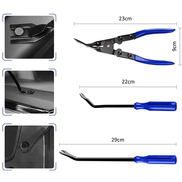 Прецизно ракување – Со правилно дизајнирани алатки во комплетот, можеш прецизно да ракуваш со сите делови од внатрешноста на автомобилот без оштетување, што помага да се зачуваат естетиката и функционалноста.