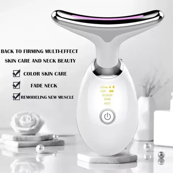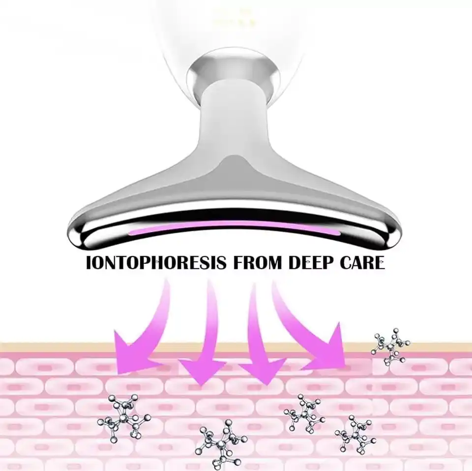 Термички придобивки: Со магнетна технологија за чувство на топлина и температура од 45℃, овој уред за тонирање на лице за лице и врат ја забрзува циркулацијата на крвта и промовира подмладување на кожата. Во комбинација со технологијата за светло во боја, помага за зацврстување и измазнување на кожата на вратот. Електричните јони помагаат во распаѓањето и повторното внесување на хранливи материи, зголемувајќи ги ефектите кога се користат со крем за вратот или мембрана за оптимални резултати.