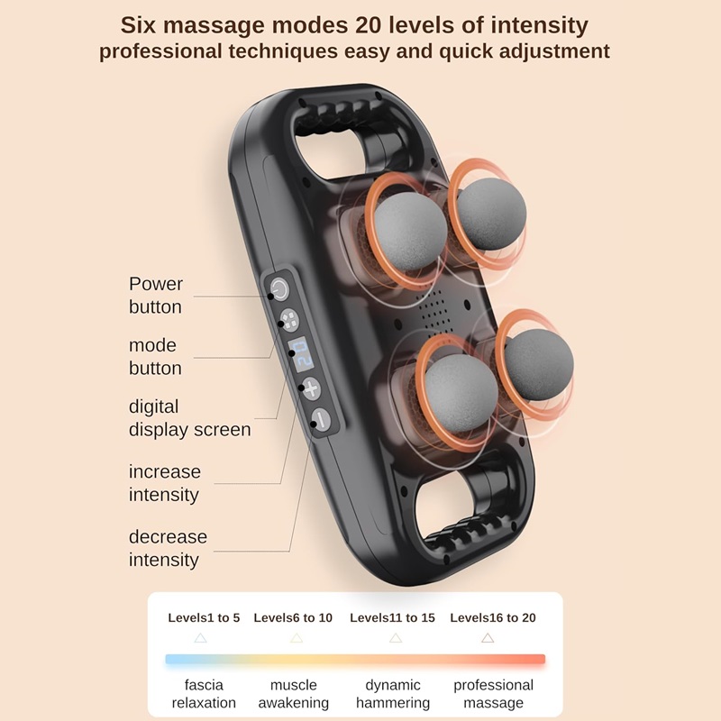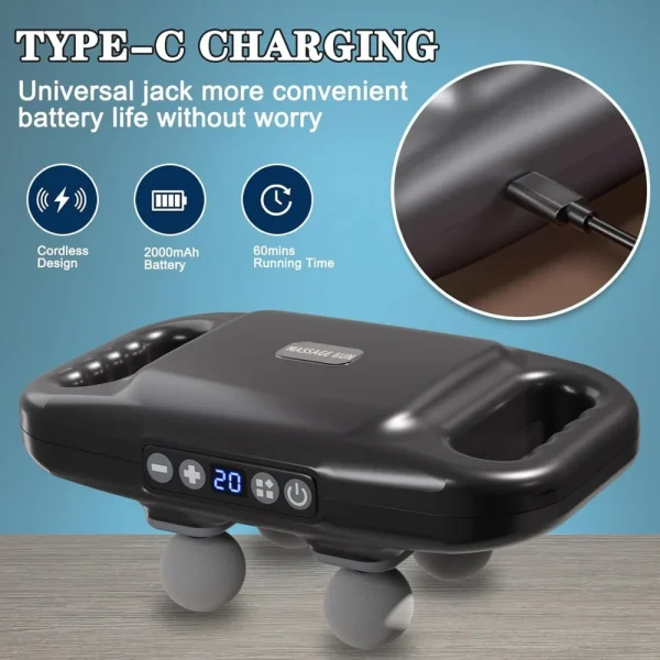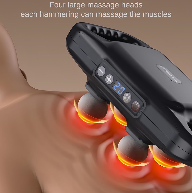 Рачен масажер со 4 глави е внимателно дизајниран, пренослив пиштол за масажа, лесен и функционален. Тоа го прави идеален роденденски подарок, пиштол за масажа за спортисти, подарок за жени или подарок за дипломирање за вашиот партнер или најблиски. Совршен е за луѓе кои долго време седат покрај клупи и страдаат од болки во грбот, вратот и мускулите на рамената или напнатост на потколеницата. Пиштолот за масажа обезбедува длабока мускулна масажа и моќно ослободување од болка
