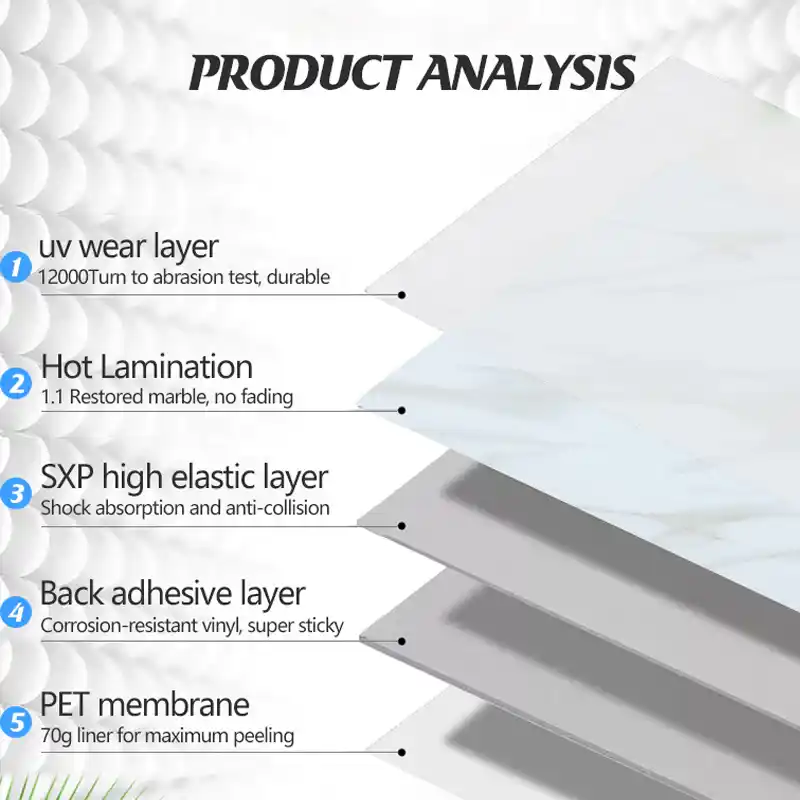 Донесете свеж изглед и елеганција во вашиот дом со овие самолепливи PVC плочки со мермерен дизајн.