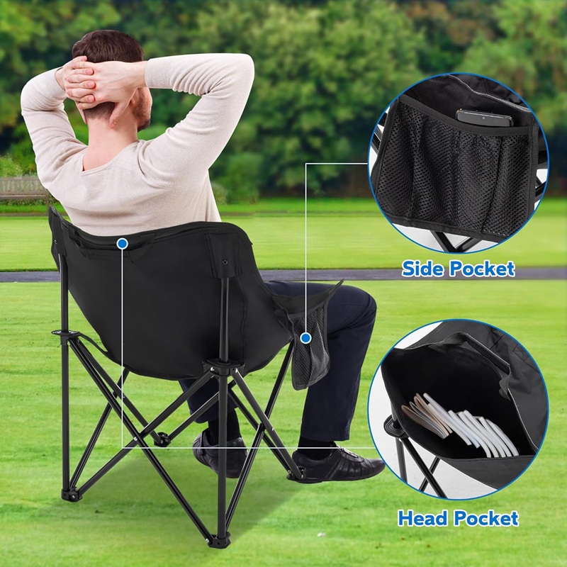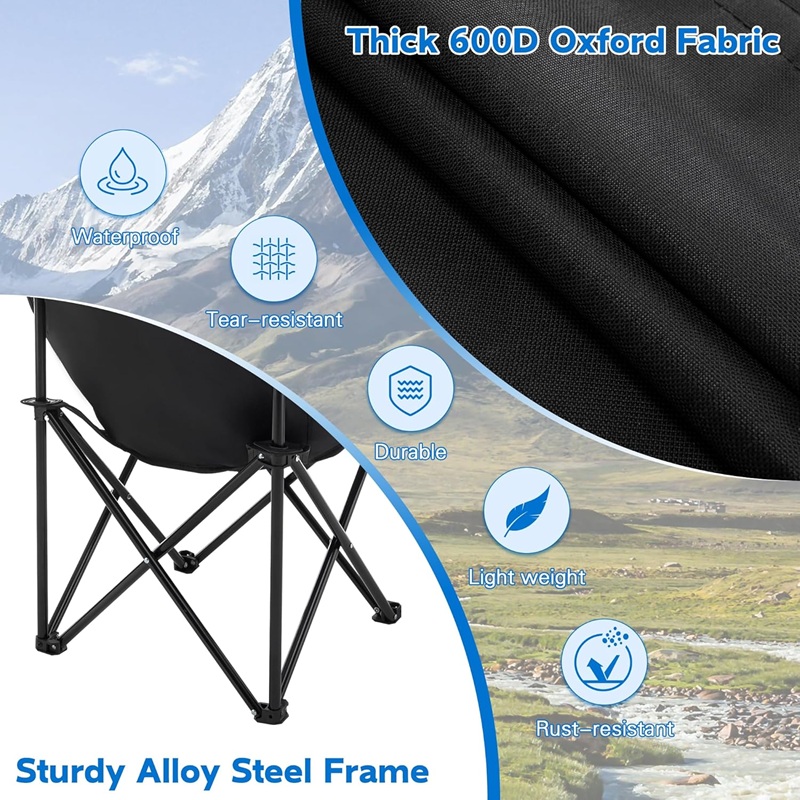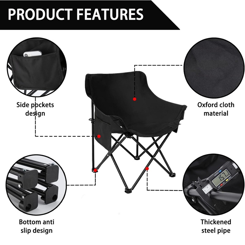 Удобна и издржлива: Нашата преклопна столица е изработена од ткаенина Оксфорд со висока густина 600D, обезбедува одлични предности на отпорност на абење, дишење и издржливост. Дури и при долго седење, оваа преклопна стол за надворешна употреба ви обезбедува врвно удобно искуство со седење.