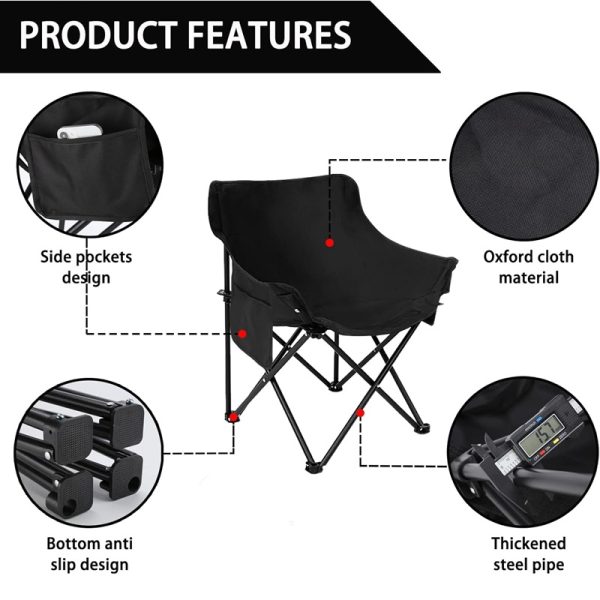 Удобна: Нашата преносна преклопна столица има џеб за складирање на десната страна за лични предмети како што се пијалоци, шолји, мобилни телефони, очила за сонце и друго.