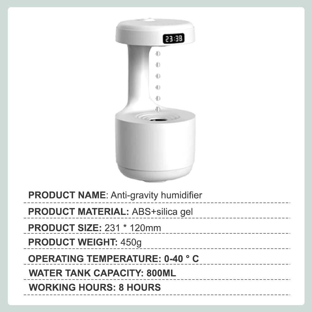 Доживејте максимална релаксација со нашиот ултра тивок анти-гравитационен навлажнувач на воздух, обезбедувајќи удобна атмосфера за спиење и проучување.