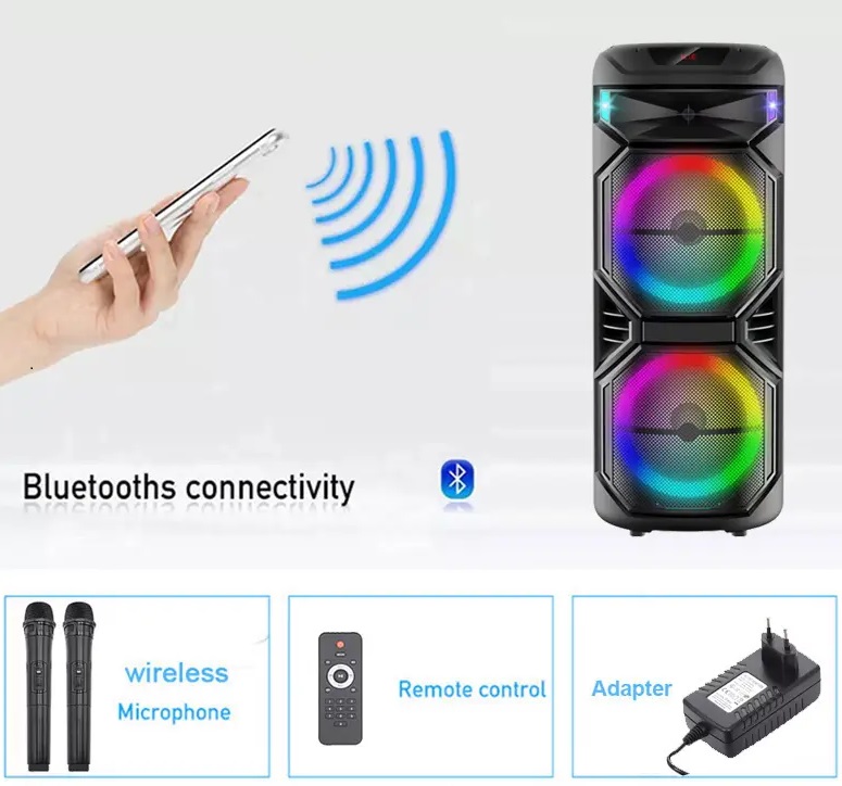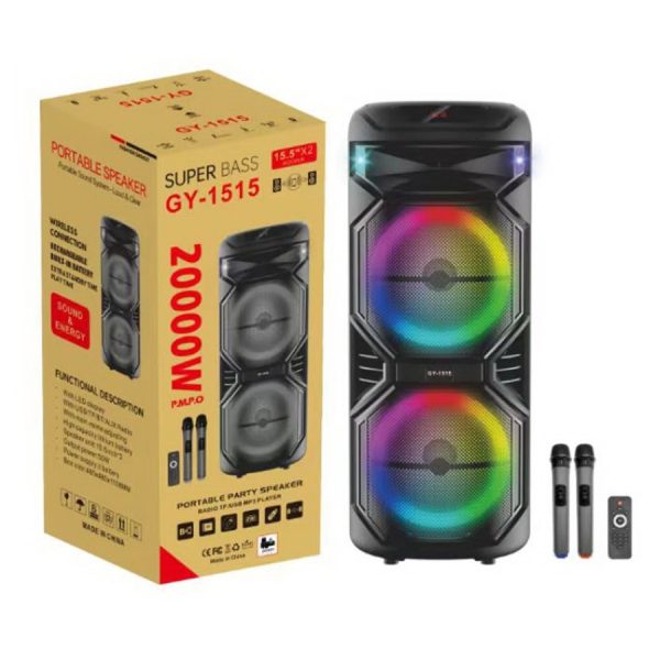 Безжичен караоке звучник 2 x 15″ со два безжични микрофони