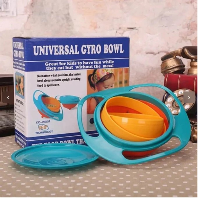 Се ротира за 360 степени и страната со храната секогаш е свртена нагоре, дури и ако жироскопскиот сад за деца е затресен, како резултат на тоа импресивно ја држи детската храна (овошје, колачиња, житарки итн.) на своето место.