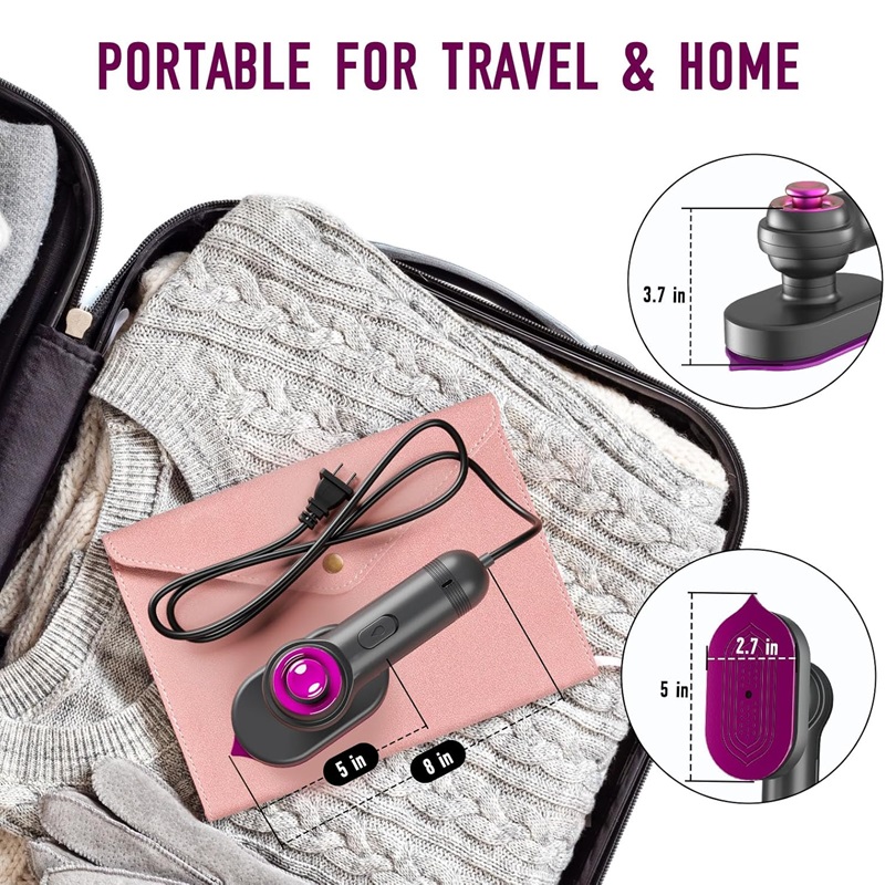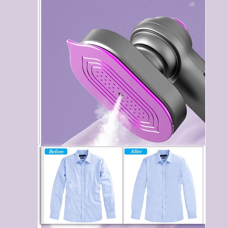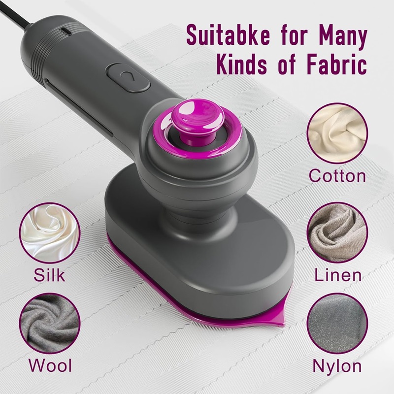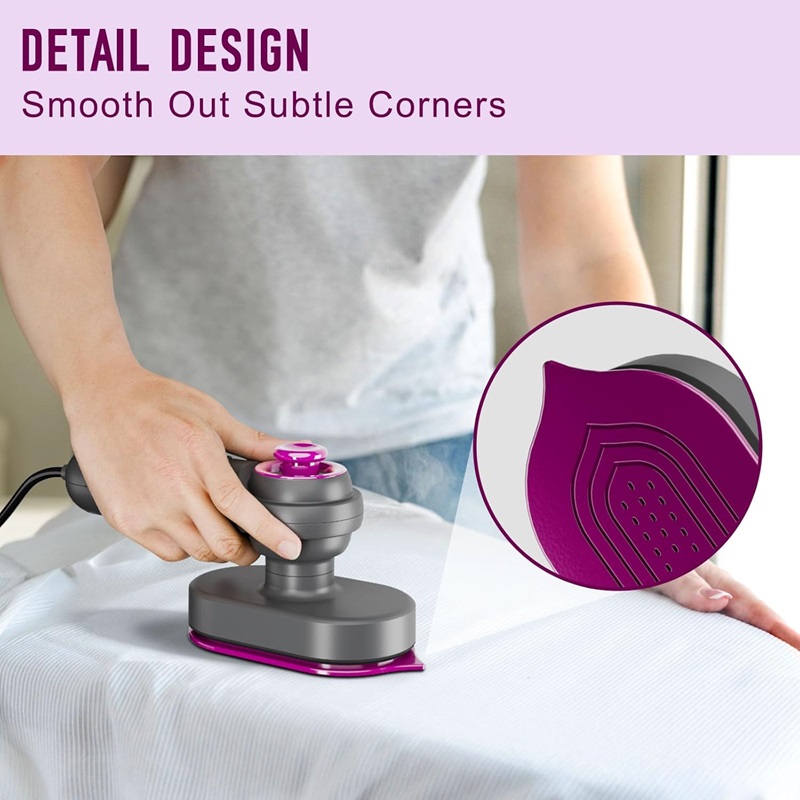 Мини пеглата за патување со пареа е опремена со титаниумски панел, постојаната температура на загревање и не ја оштетува облеката. Може за пеглање органски ткаенини, мешавина од најлон, волна, памук, лен и многу повеќе. вода, ќе останат мал број на дамки од вода, што е нормално.