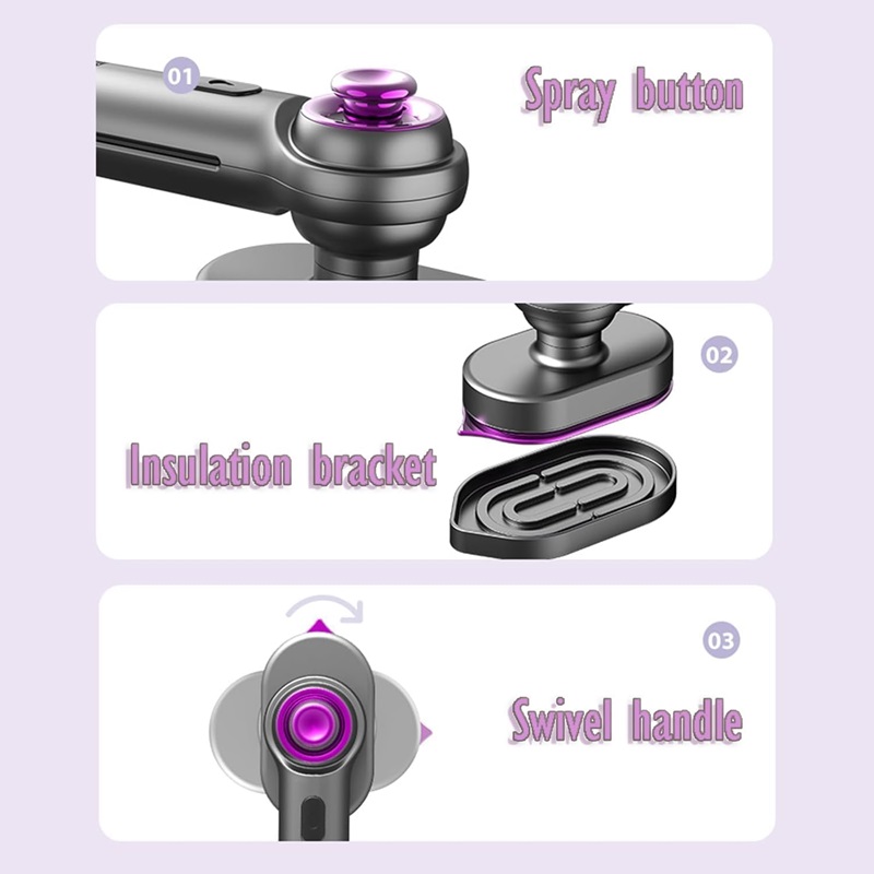 Погодно е да се додаде вода со чашата за полнење за да се спречи прскање, во секое време можете да го проверите нивото на водата во резервоарот. Рачката може да има три аголни точки за да одговара на различната употреба на железо, и може да се ротира 0°-90°-180° за да го прилагодите просторот за држење на рачката.
