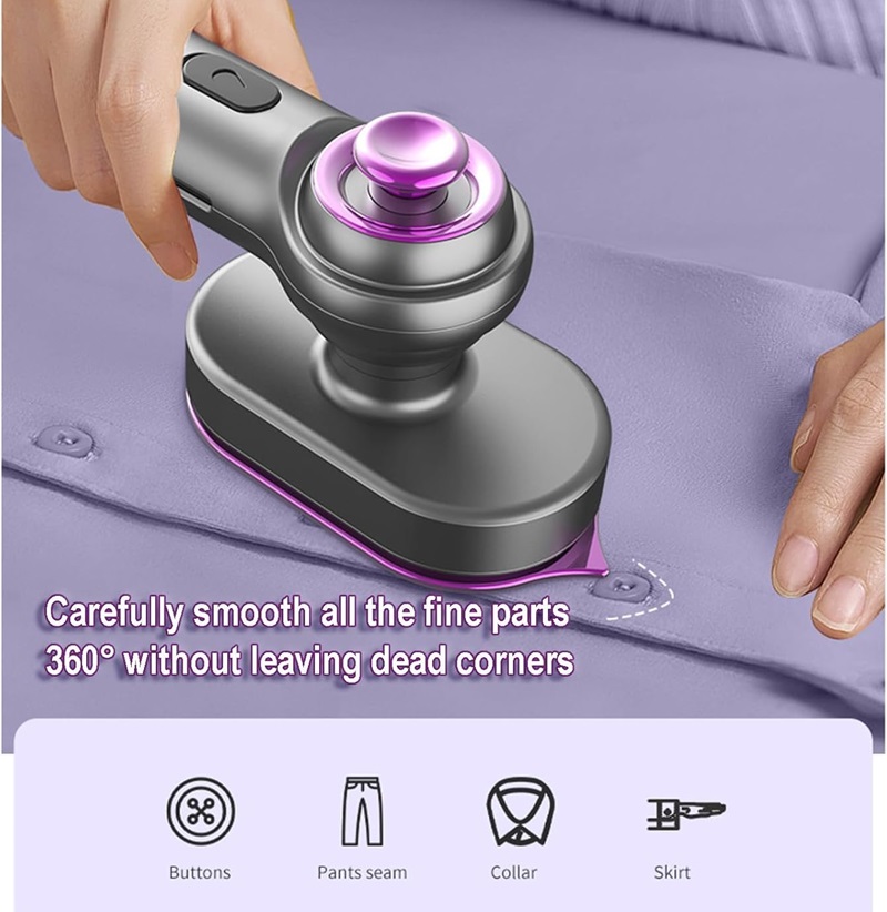 Моќната преносна ефикасност на пеглата за облека го прави животот порафиниран, лесно ги отстранува брчките на ткаенините како облека, кошули, завеси, постелнина, кадифен, памук, лен и други ткаенини. Рачното железо може да заштеди простор, е лесно да се користи и да се користи за патување. Лесно се става во куфери и ранци и може лесно да се носи во секое време, насекаде.