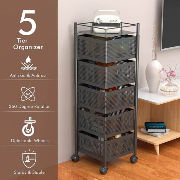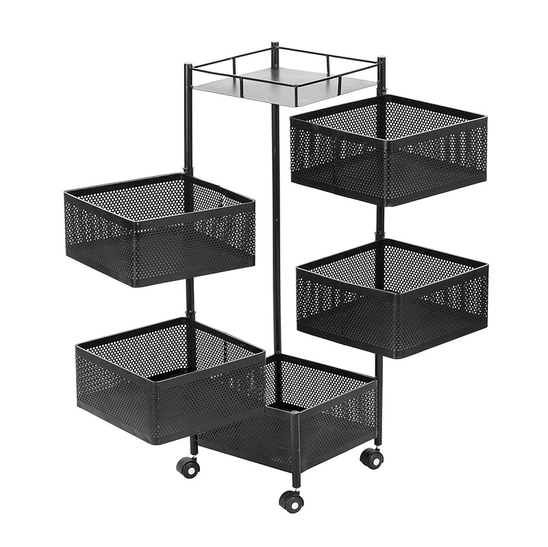 Металните корпи ротираат одолу ногарите, за полесен пристап до храната или предметите во корпите.