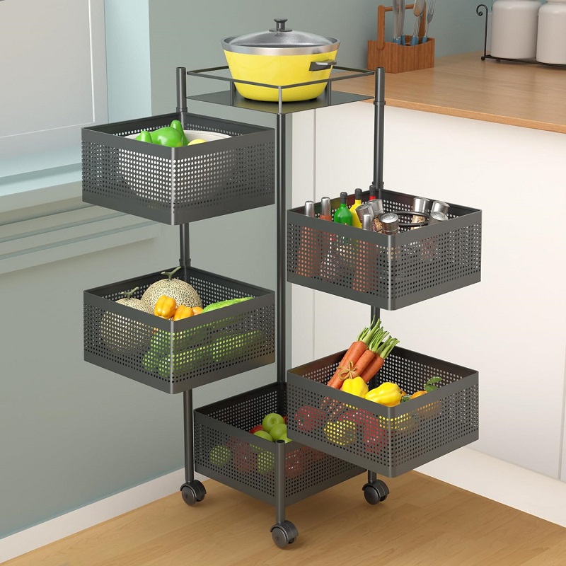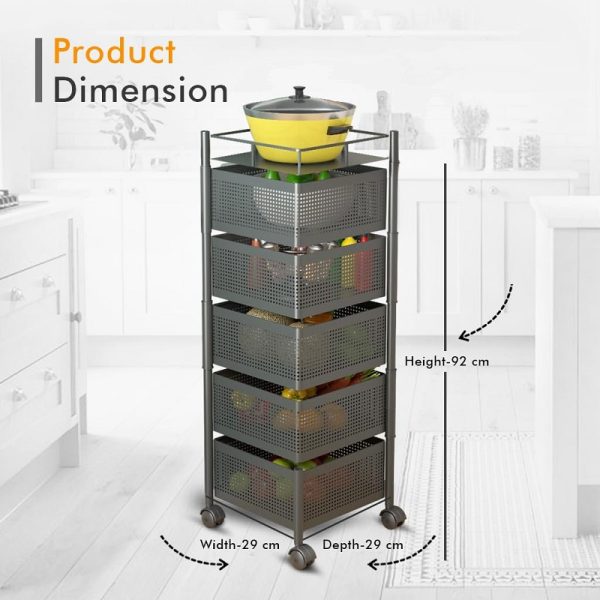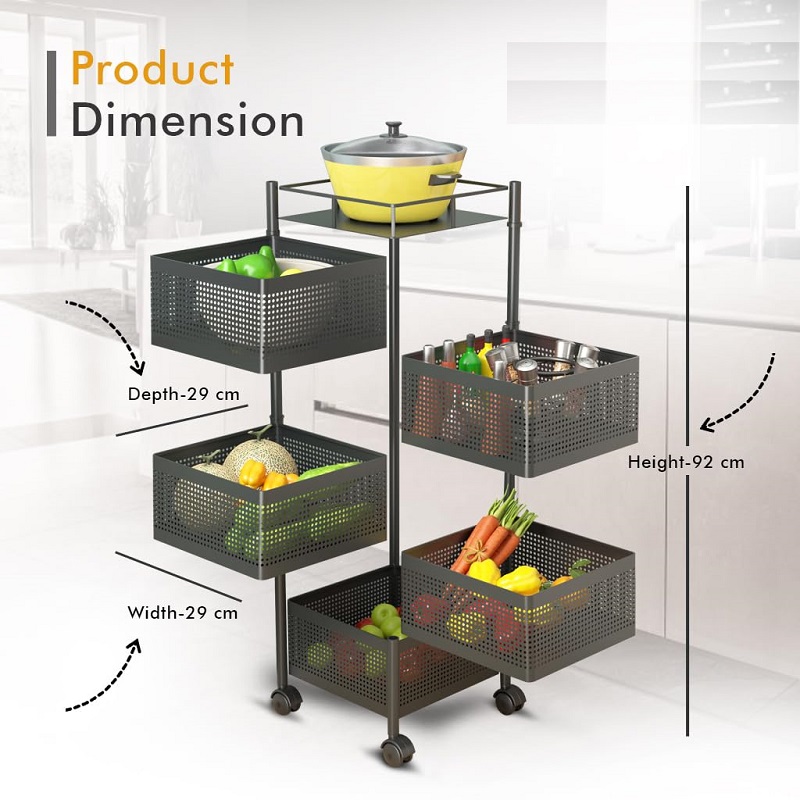 Полицата за складирање овошје и зеленчук е изработена од висококвалитетен метал, кој е антикорозивен, водоотпорен и антирѓосувачки, издржлив за долготрајна сигурност.