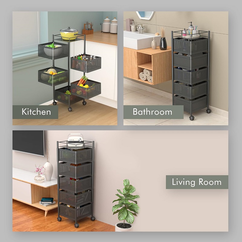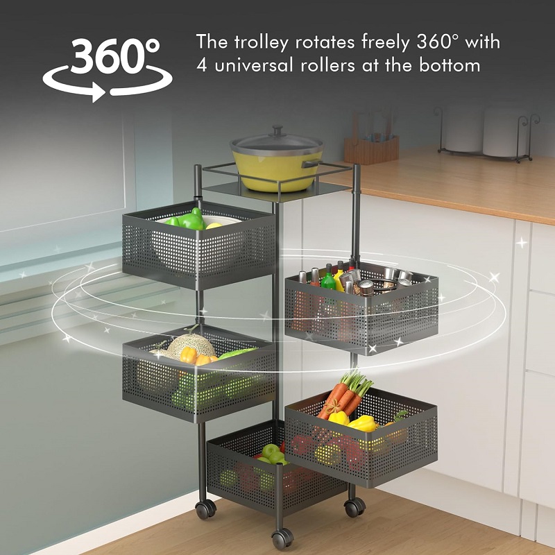 Количката се ротира слободно за 360° со 4 универзални ролери што се поставуваат на дното, кои му помагаат на количката да се движи слободно и да се врти без напор да ја запре количката на мали простори. Лесно се чисти, само избришете го со влажна крпа.