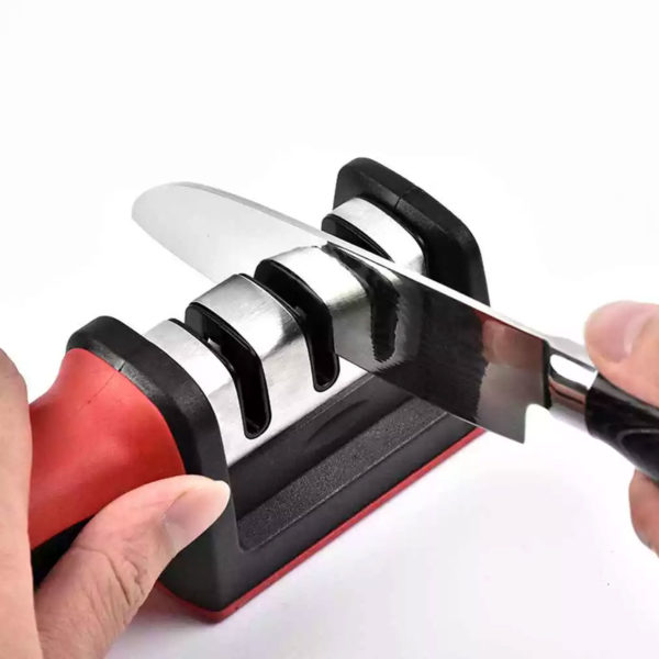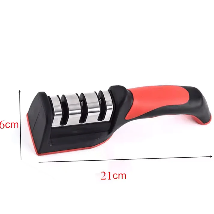 Нова генерација на кујнски острилки за ножеви со нашиот неверојатен систем со 3 отвори. Првата дијамантска шипка за острење ги поправа и исправа оштетените сечила пред да се изострат, вториот отвор е наменет за да ја врати формата V и конечно третиот слот прави фино перфектно острење на вашите ножеви.