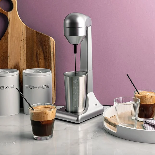 Апаратот за млечни шејкови има класичен изглед и функција со дизајн со нелизгачка подлога и тежинска основа за дополнителна стабилност, така што можете да го користите безбедно и со доверба.