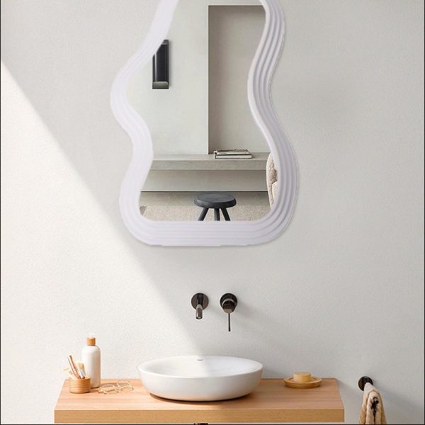 Внесете уникатен допир во вашиот дом со асиметричното огледало со брановиден дизајн. Ова огледало не е само функционално, туку е и стилски додаток што ќе ја освежи секоја просторија.