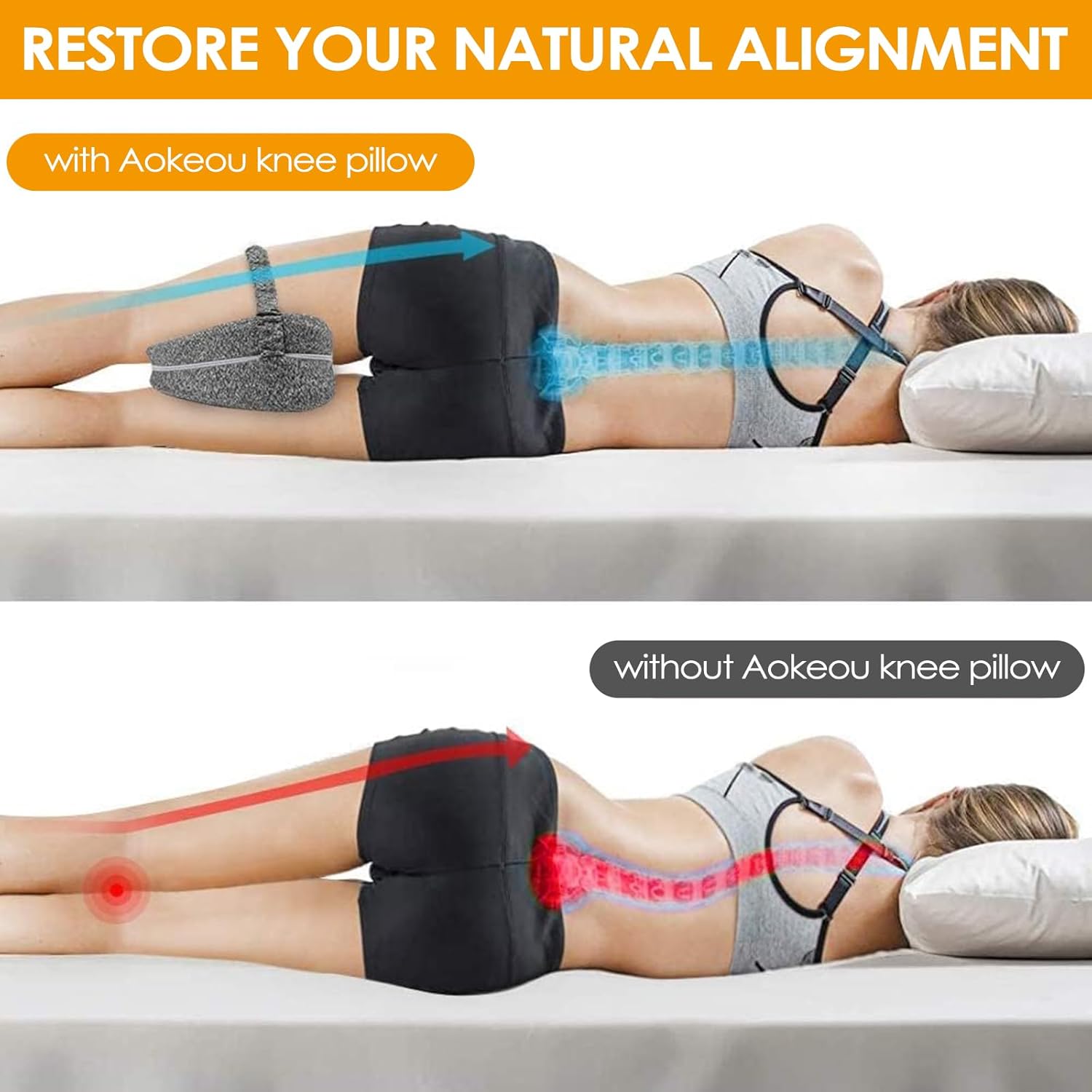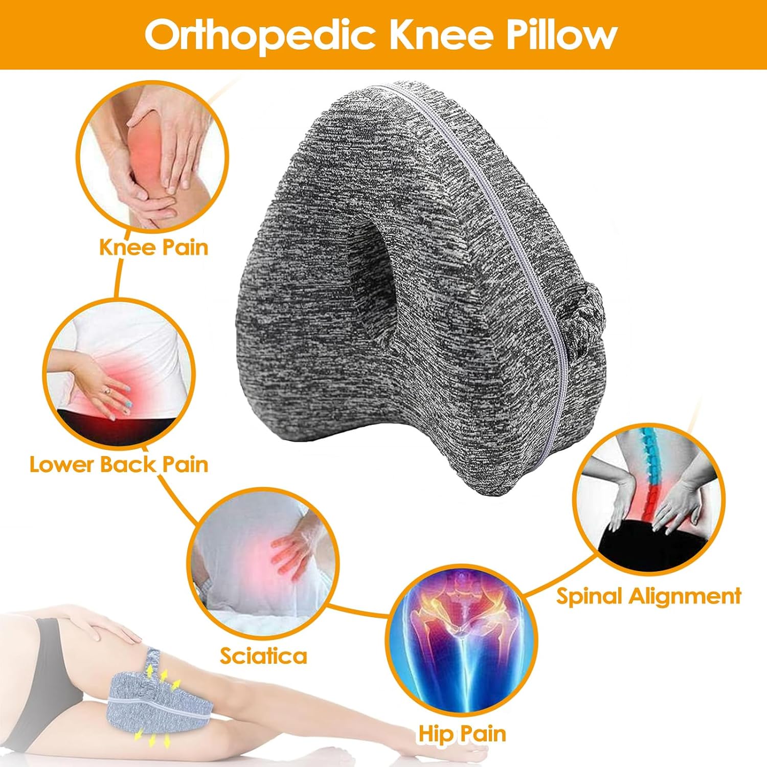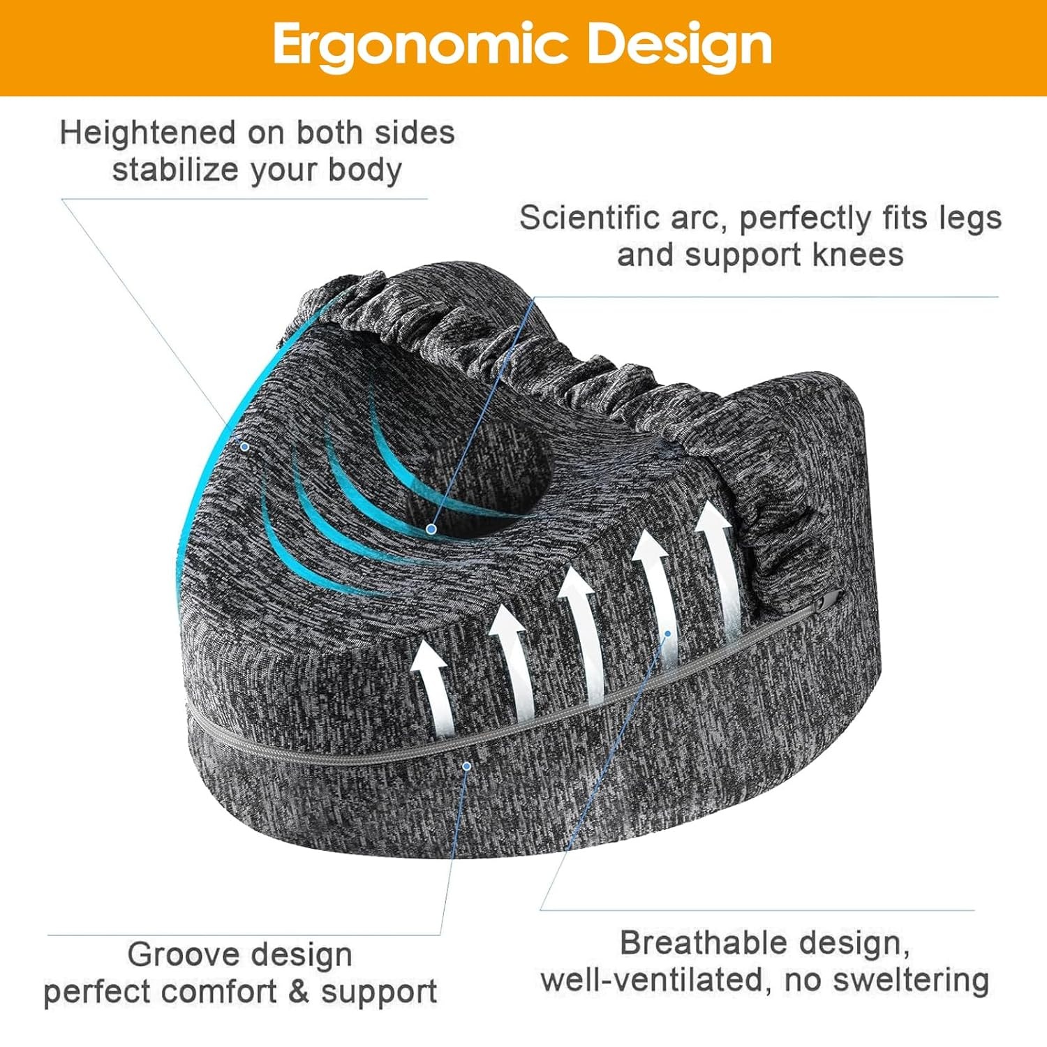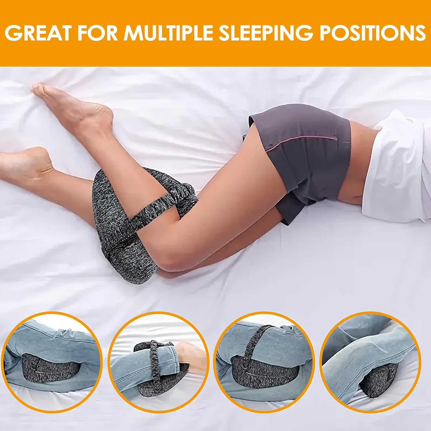 Перница за нозе погодна за лицата што спијат на страна: Ергономската перница за спиење на страна се поставува на бутовите, листовите и колената за да ја прилагоди положбата на нозете, колковите и ‘рбетот на лицата што спијат на страна. Перницата за спиење на страна ефикасно ги ублажува болките во нозете, грбот и колената и обезбедува пријатна средина за спиење.