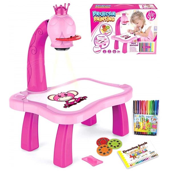 Оваа маса доаѓа со интегриран проектор кој им овозможува на децата да цртаат низ проекциите. Со широк спектар на тематски проекции, вклучувајќи животни, возила, букви, бројки и друго, децата ќе уживаат во бескрајна инспирација и забава додека ги создаваат своите уметнички ремек-дела.