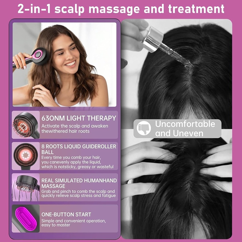 Овој иновативен уред не само што ја стимулира циркулацијата на скалпот, туку и овозможува рамномерна апликација на масла или серуми, помагајќи им на хранливите состојки подобро да се апсорбираат во коренот на косата.