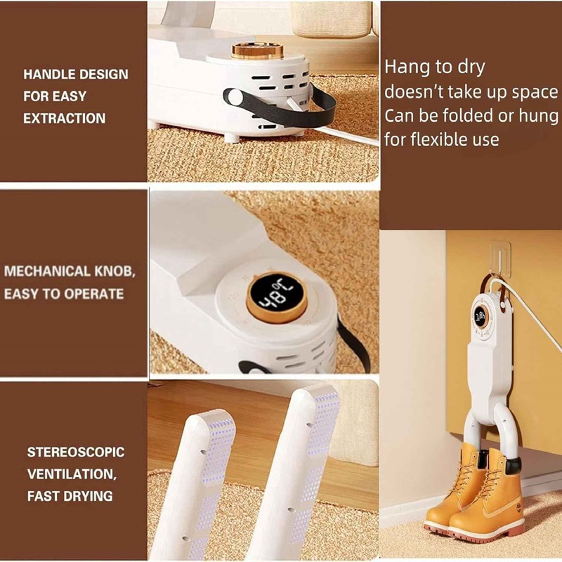 Уред за сушење чевли и пренослив стерилизатор е најдобар револуционерен начин како да ги одржувате чевлите чисти и без непријатни мириси . Овој компактен уред е дизајниран со акцент на практичноста и леснотијата на користење , овозможувајќи ви ефикасно да ги дезинфицирате чевлите насекаде и во секое време. Неговата технологија обезбедува силна способност за дезинфекција, отстранувајќи ги бактериите и мирисите што можат да се појават кога чевлите се носат долго време.