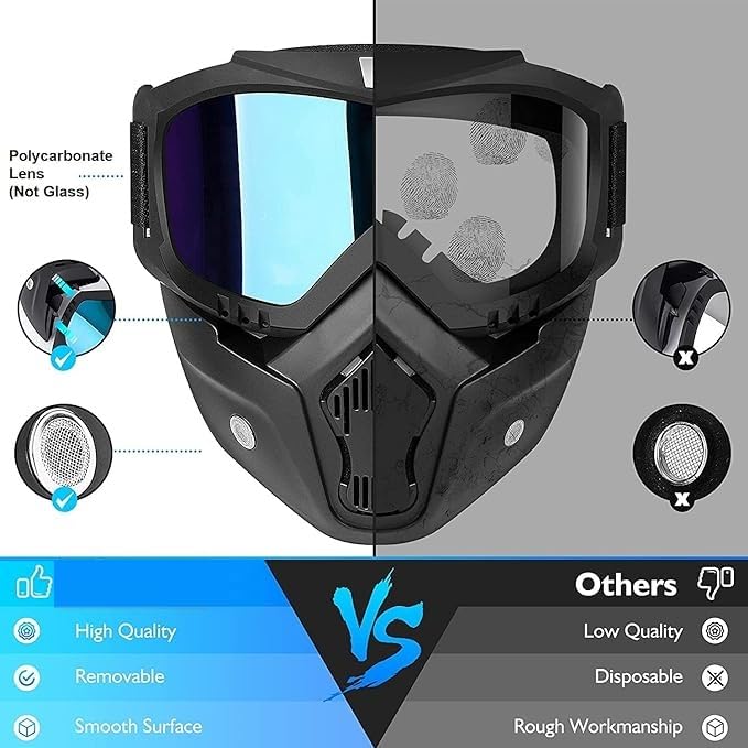 Може да се носат заедно или посебно само очилата без заштитната маска