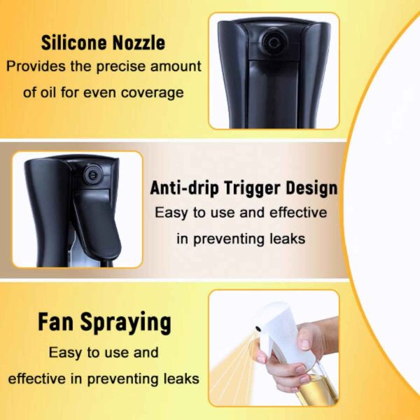 Едноставно дајте кратко прскање наместо да поминувате долго време на четкање или премачкување! Елегантното шише со спреj овозможува фино, рамномерно дозирање на оцет и масло со притискање на копче. Совршен за здрава исхрана со малку маснотии и за поддршка на пржење, печење, варење и печење контролирано со калории.
