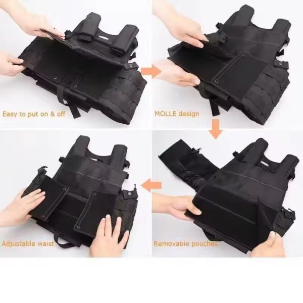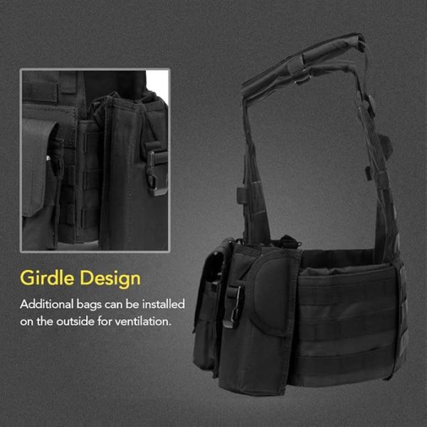 Страните на рамената и половината имаат дизајн на лента и тока што ви овозможува брзо и удобно да го носите и соблекувате овој тактички елек.