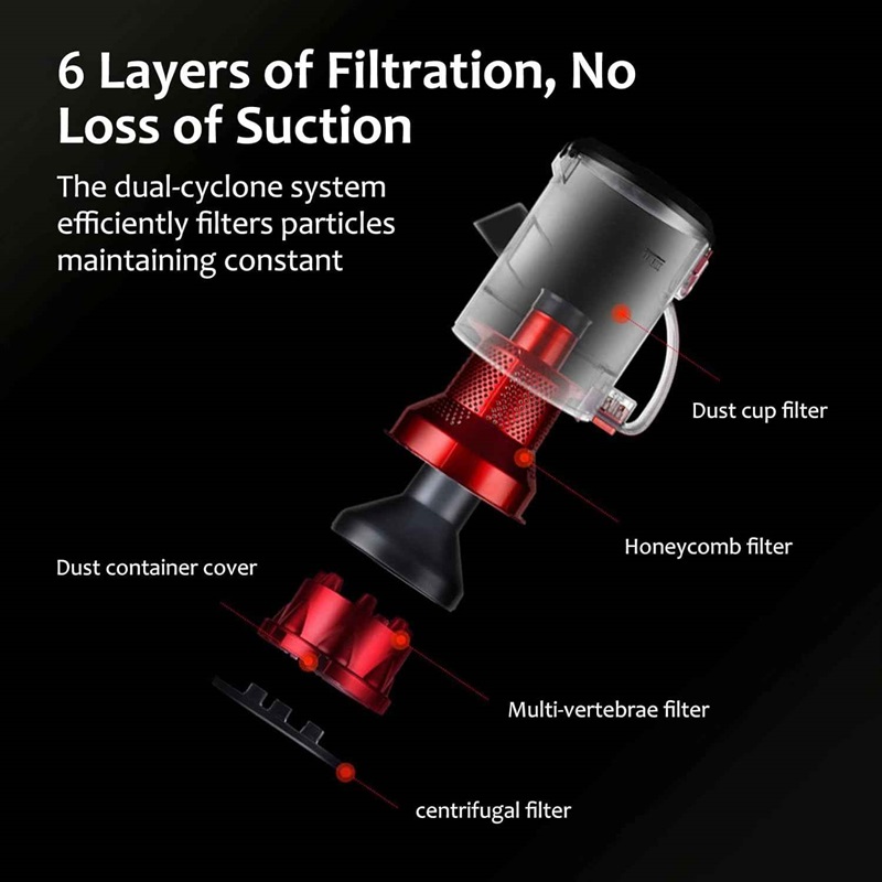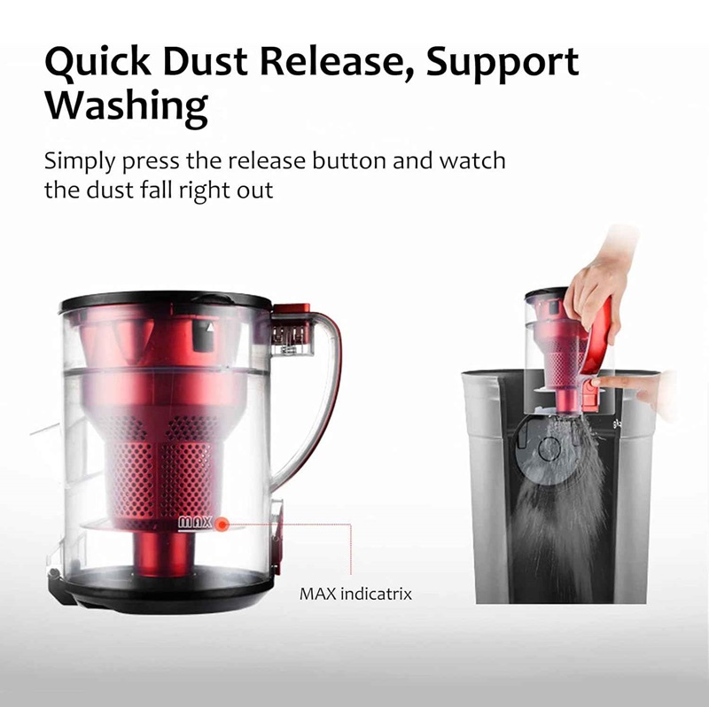 Циклонската правосмукалка има практичен и лесен дизајн за користење, без менување на ќеси. Дизајнот на садот за собирање отпадок е циклонски што овозможува константна циркулација на воздухот внатре во вид на циклон што придонесува, константна моќ на всмукување без опасност од затнување на системот со прашина и одпадоци. Опремена е со филтер систем кој ја задржува сета прашина внатре, се пере, и може да се користи многу долго време.