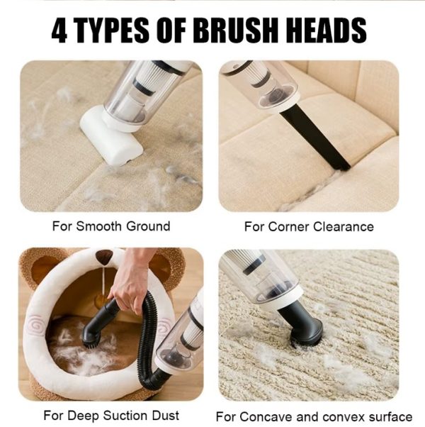 Заменливи додатоци за различни потреби за чистење. Погоден за теписи, дрвени подови, плочки и многу повеќе.